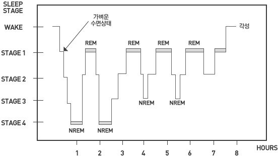 위 그림에서 보시듯이, REM 수면 주기에서 꿈을 꾼 것이 Non-REM(NREM) 수면 주기를 거치면서 꿈에 대한 기억을 잃어버리게 됩니다.