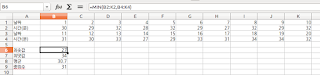 평균: =AVERAGE(30,29,32,28,32,29,27,32,29,32,31,30,33,27,29,33,31,34,34,32)